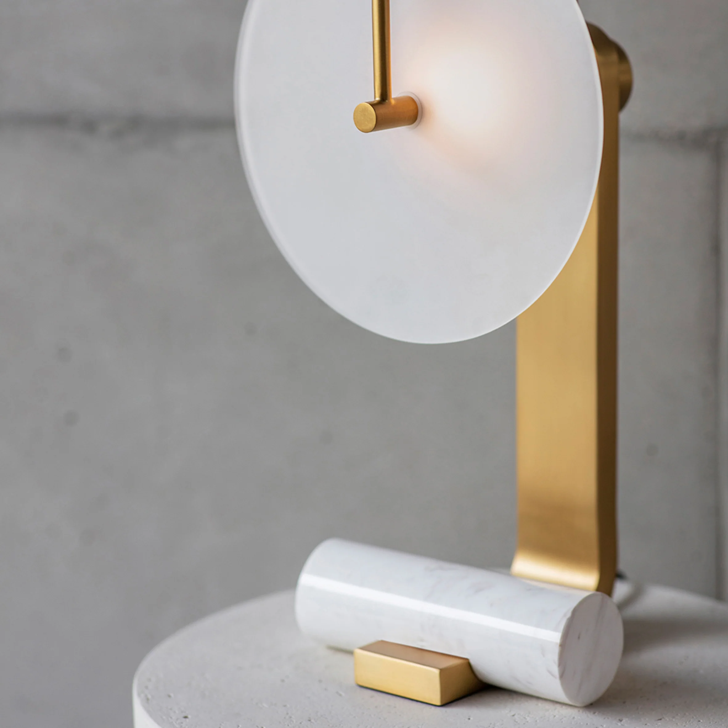 Finish: Brushed brass, White frosted glass, White onyx marble